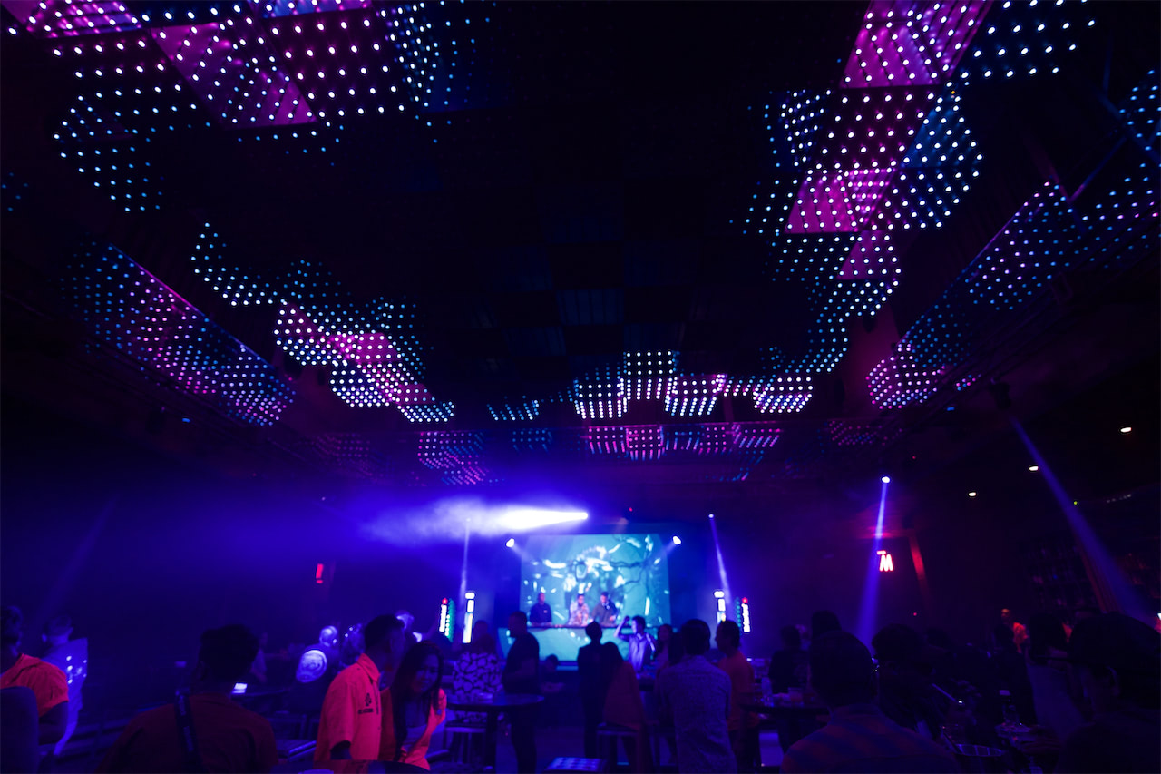 Since the venue is a square, this concept was transformed into reflective 3D light cubes on the ceiling for the main lighting design. Customized 2.7-cm LED pixels with milky covers and a rock-solid MADRIX lighting control system were the key to make this happen.