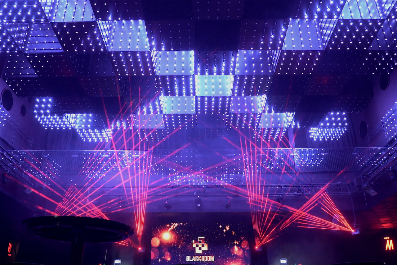 Blackroom really became a trend setter in the city of Semarang. Personally, as a lighting designer, I'm falling in love with this stunning 3D cube effect again and again. It was amazing to blend the colors as the reflections of the LEDs onto the black matte panels create extraordinary effects. It almost becomes a work of art.