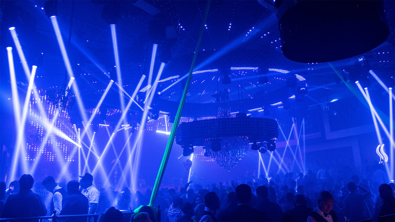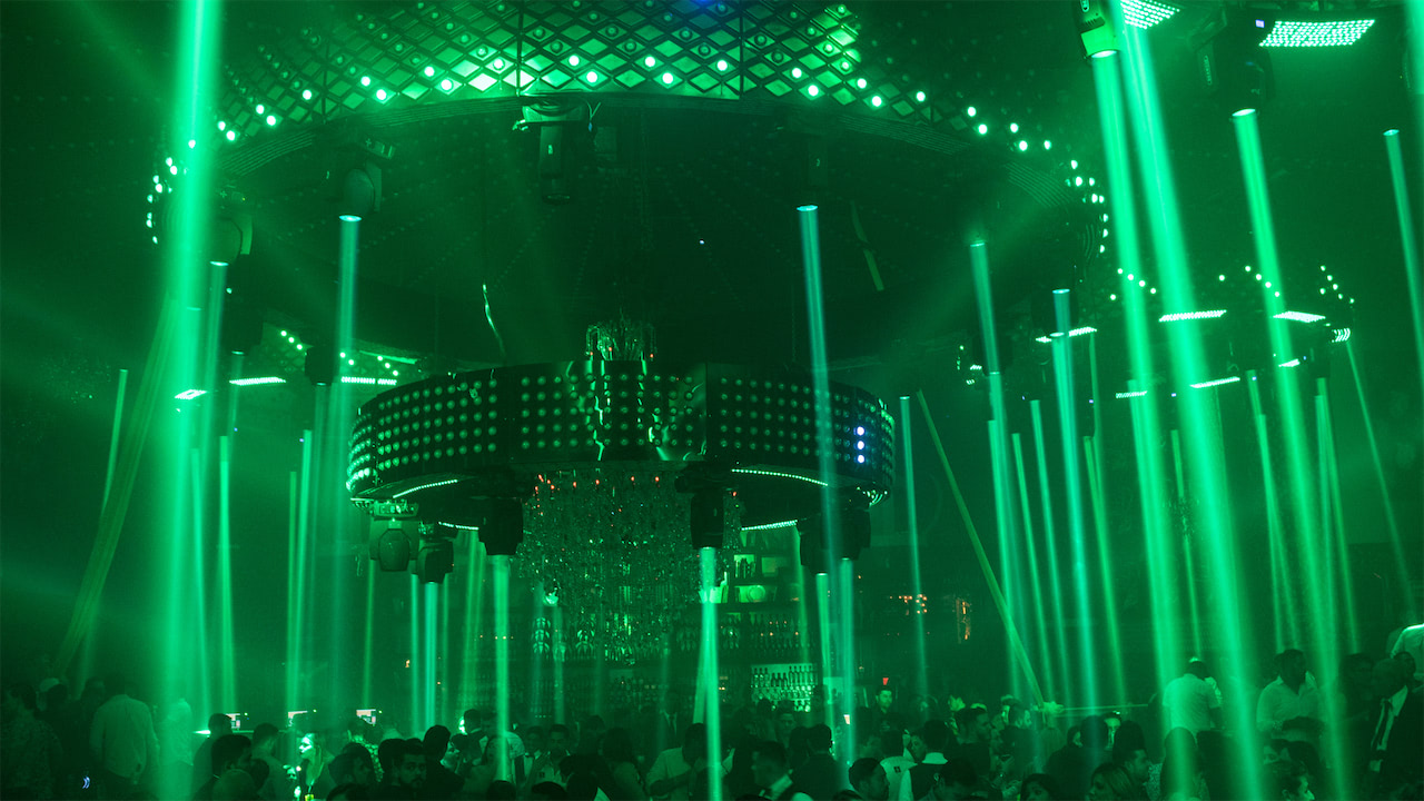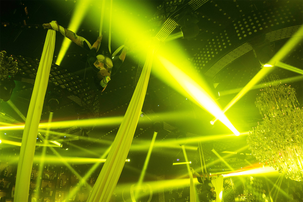 The result of the latest remodelling phase culminates in an impressive nightclub: More than 20,000 RGB LED pixels, 128x 7R beam moving heads, 6x kinetic, circular structures, and another rotating central, circular structure, in addition to a huge and beautiful chandelier that weighs more than a half ton, which can be lowered and rotated as well.