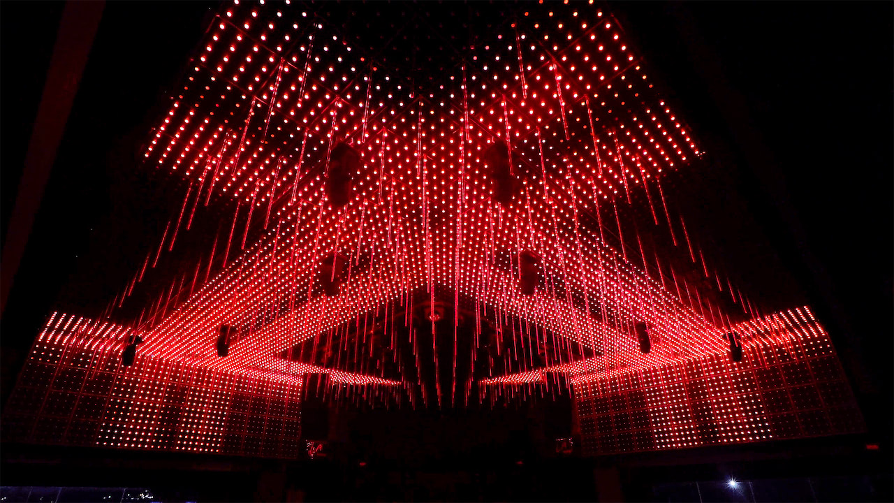 3D visual effects are the main focus of this setup. In order to present eye-catching LED lighting with tremendous wow-factors, the selected fixtures were distinctly arranged on different levels of the ceiling. They were also patched on different layers in the MADRIX Software. The final result is exceptionally gorgeous lighting that creates stunning visuals that are as volumetric, colorful, and dynamic as initially intended.