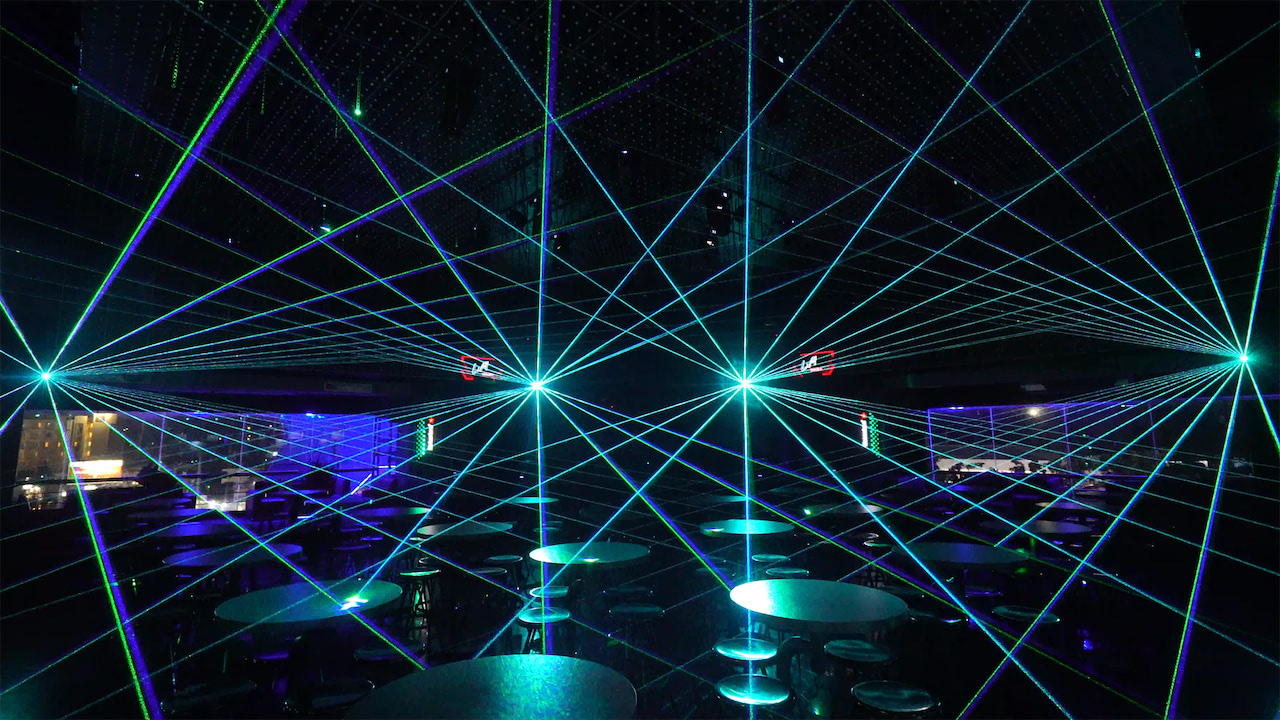 Additional lighting elements include a range of laser lights controlled by Pangolin software, moving lights installed throughout the venue, as well as large video screens behind the DJ booth in the corner and alongside the dance floor.
