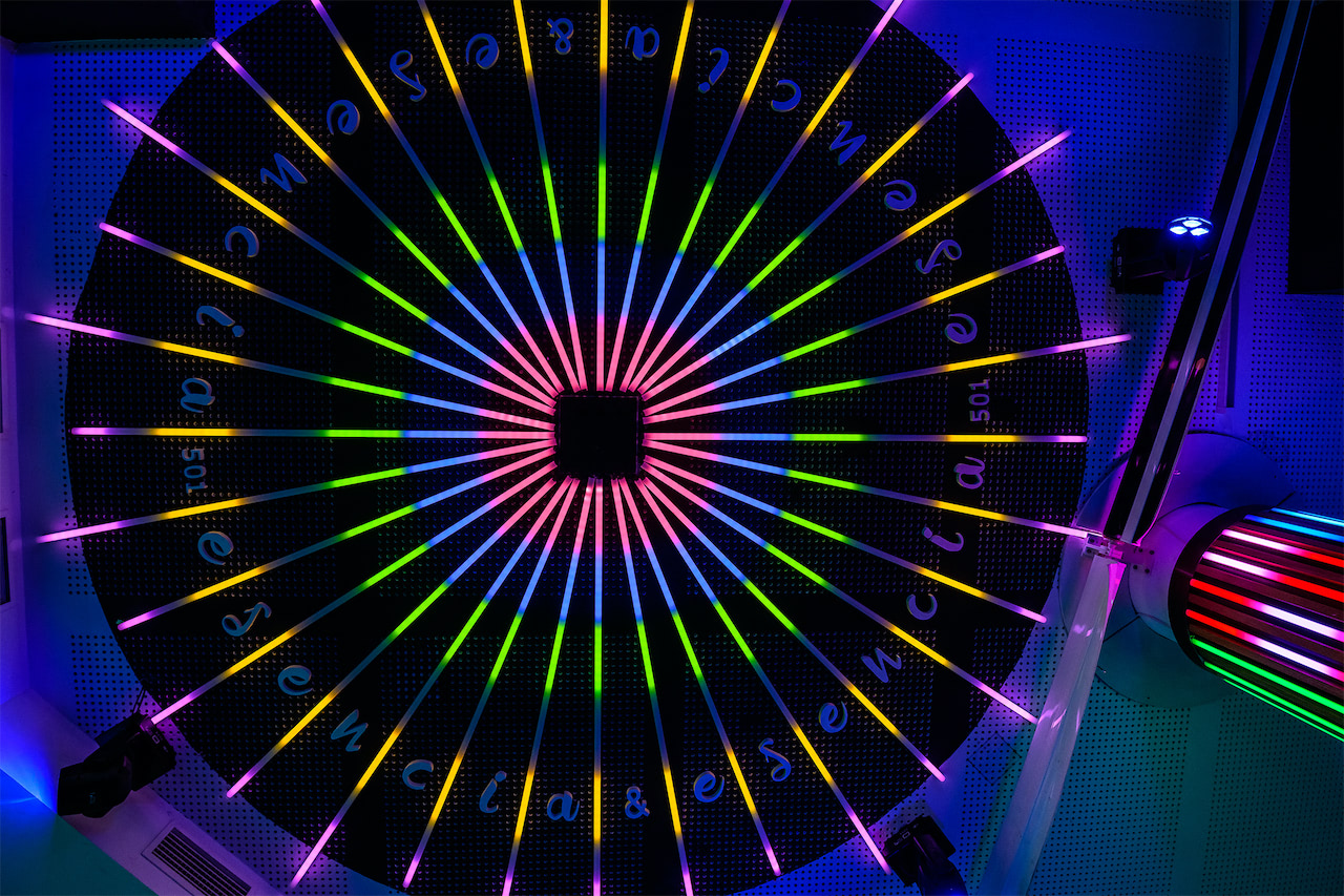 The main characteristics of the installation are its versatility and dynamic energy, achieved by both the arrangement of the individual elements as well as the play of colors. This is all thanks to the digital lighting and MADRIX Software with all of the impressive possibilities it offers.